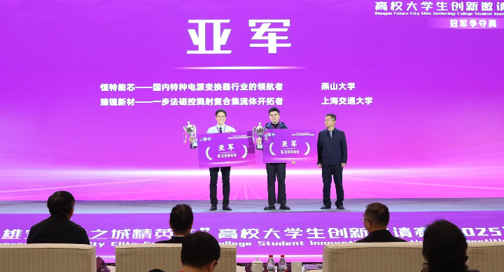 上海交通大学“臻锂新材—一步法磁控溅射复合集流体开拓者”、燕山大学“恒特能芯—国内特种电源变换器行业的领航者”获得亚军。
