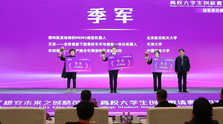 北京航空航天大学“面向航发检测的MEMS微型机器人”、中国农业大学“农创兔芯—三产融合引领宠物兔业新航向”、天津大学“天目—全球首款下肢骨折手术与康复一体化机器人”获得季军。