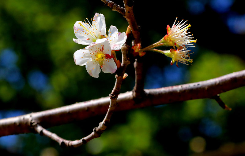 2020年03月05日,苏州市人民桥堍一株早樱花含苞欲放的春意景致。