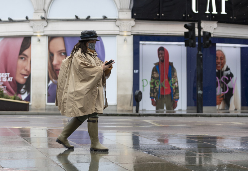 2月3日,一名戴口罩的女子走在英国伦敦街头。