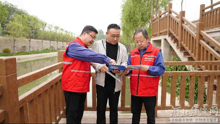 国网蠡县供电公司工作人员在月明河边进行高压线下禁止垂钓的宣传。庞亚杰 摄