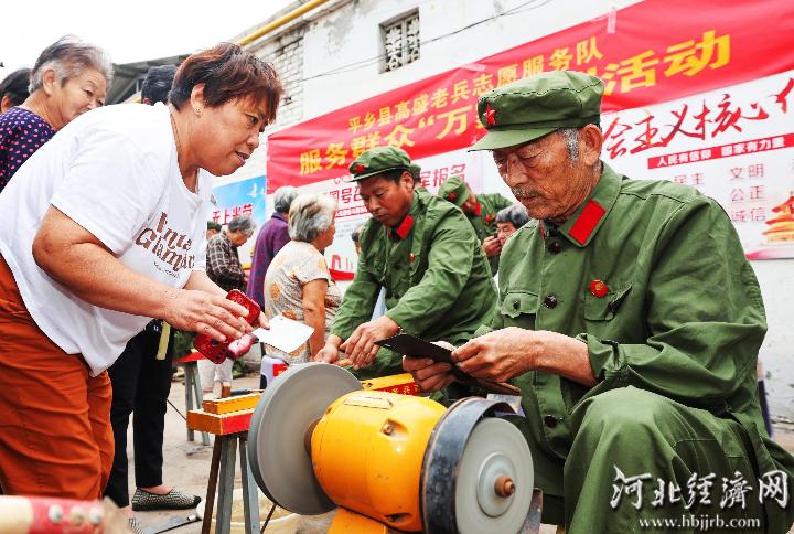 河北经济日报讯(通讯员 李国军)7月2日,平乡县高盛爱国拥军老兵志愿服务队来到该县孙章村开展志愿服务活动,不仅为村民开展免费开展量血压、理发,磨剪子、磨菜刀、修理自行车、电动车等服务,还积极向群众宣讲党的好政策,以实际行动为村民办好事,办实事,广受当地群众好评。