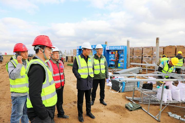 督查组调研升压站建设现场。李颢 摄