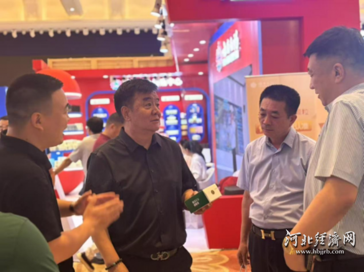 御芝林OTC事业部总经理马雁祥(左一)和中国医药物资协会相关负责人详细介绍御芝林核心产品。张永红 供图