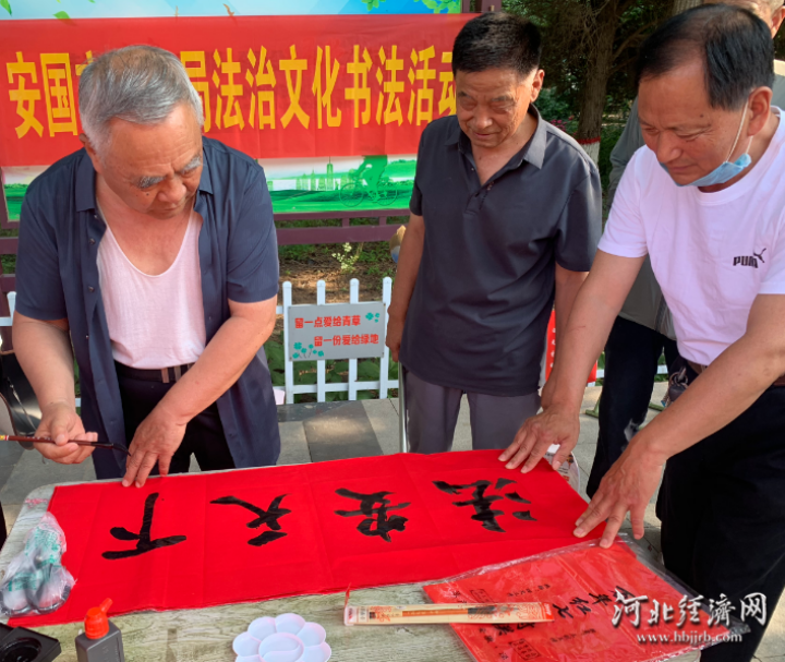 河北经济日报讯(通讯员 蒋佳康)6月10日,河北省安国市司法局组织书法爱好者,在药都公园举办法治书法活动。活动现场翰墨飘香,法治文化与书法艺术相互交融,吸引众多市民驻足欣赏和参与,营造出浓厚的法治氛围。