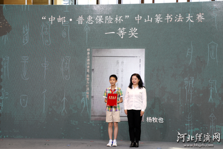 中山篆不仅是青铜器上的古老密码,更是活化的文化基因。从考古发掘到数字孪生,从学术研究到大众传播,中山篆正以多元姿态融入现代生活。为充分挖掘中山篆的文化内涵,广泛传播这一独特艺术,河北邮政联合中邮保险面向全省青少年书法爱好者,共同举办了“中邮·普惠保险杯”中山篆书法大赛,收到了上千幅投稿作品。经过专家严格评审,共选出一等奖1名,二等奖3名,三等奖6名。活动现场为参加大赛的优秀代表颁发了证书。