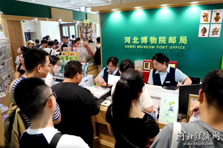 设在河北博物院一楼的河北博物院邮局是河北省首家以博物馆命名的主题邮局,也是全国文旅融合的标杆项目。在这里,观众除了可以欣赏当天正式发行的《中国古代书法——篆书(二)》特种邮票系列产品,还可以看到数百款特色邮品和文创,体验书信寄递、明信片互换等特色邮政服务。活动现场还有身穿邮政制服的AI机器人与游客互动。