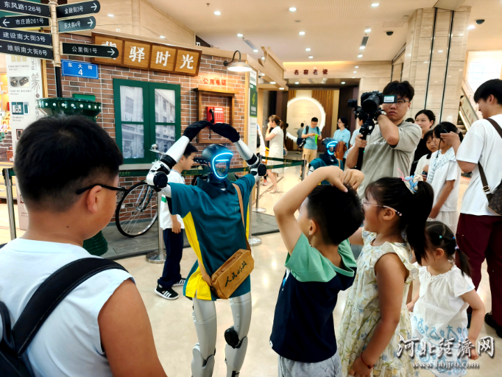 身穿邮政制服的AI机器人与游客互动。郝艳红 摄
