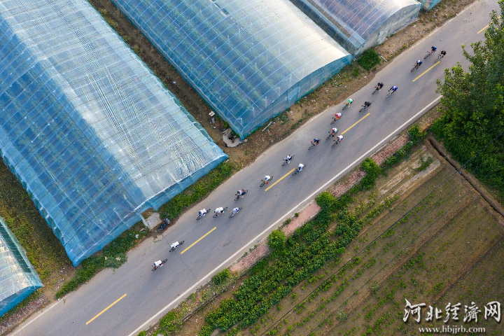 抵达南寺郭葡萄小镇后,骑行者们被眼前的景象所吸引。只见一排排整齐的葡萄大棚排列在田野间,这里是广宗县特色农业发展的重要基地。近年来,广宗县充分利用资源优势,采取“合作社+基地+农户”的模式,大力发展优质葡萄种植产业。目前,葡萄种植总面积达2.8万亩,年产值达2.5亿元,形成了育苗、种植、销售等一条龙产业链,拓宽了群众增收渠道,推动了当地乡村振兴。