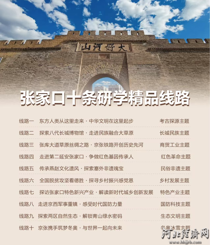 河北经济日报讯(张雅洁)为加快京张体育文化旅游带建设,进一步推进张家口新时代文旅教体融合发展,张家口体文旅产业发展集团深度挖掘特色资源,打造设计研学课程,串点成线、串珠成链,推出张家口十条主题精品研学旅游线路。