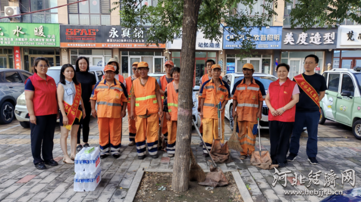 志愿者为环卫工人送去清凉用品。陈玉洁 供图