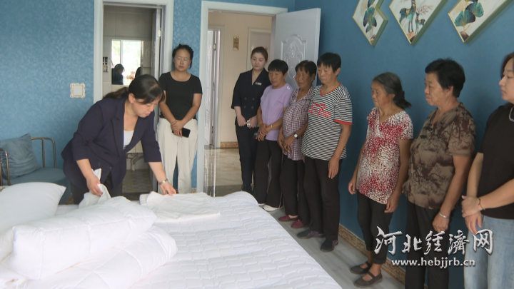 民宿基本服务培训中,专业家政人员通过生动案例,从举止表情、沟通礼仪、服装穿着等方面,讲解民宿工作人员在服务礼仪方面的注意事项。培训班还安排了铺床、摆台等技能实操环节,帮助妇女们学习到开单、抛单和包角等操作流程。