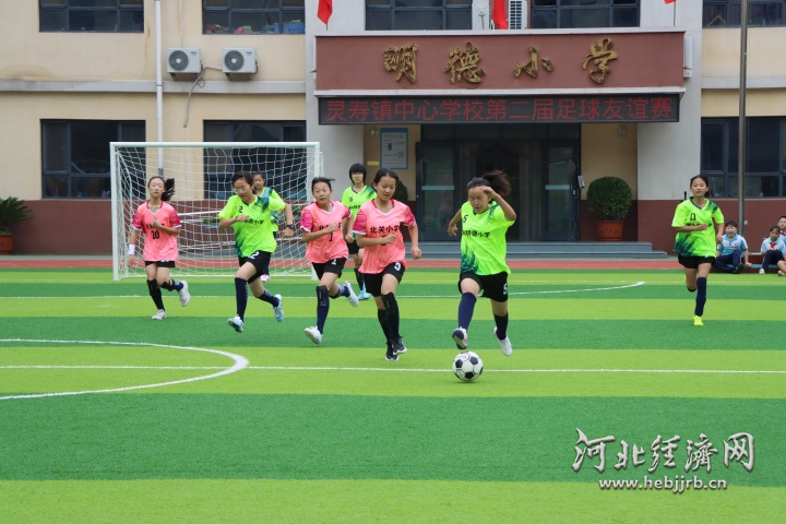 石家庄市灵寿镇中心学校在明德小学举行第二届足球联谊赛,4支学生代表队参赛。小球员在赛场上奔跑、传球、射门,展现新时代青少年蓬勃向上、奋勇争先的精神风貌,助力学生增强体质,培养团队精神。刘晓敏 供图