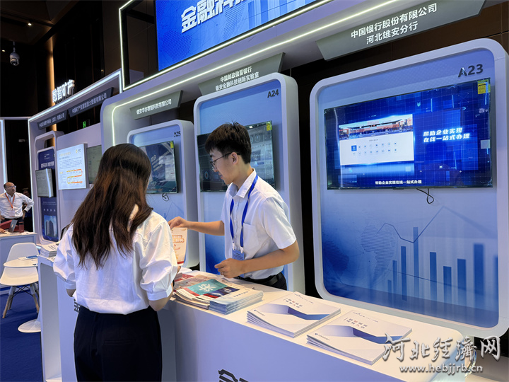 中国银行河北雄安分行客户经理为参展企业讲解金融产品。冯伟鑫 供图