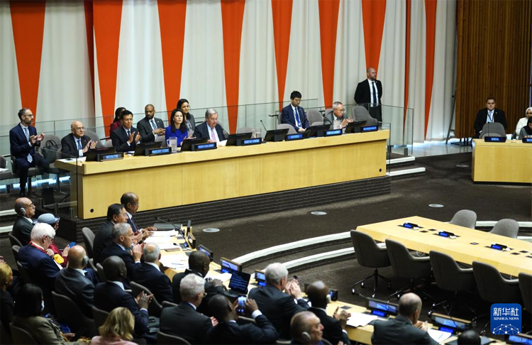 这是9月24日在位于纽约的联合国总部拍摄的可持续、包容和有韧性全球经济峰会现场。新华社记者 吴晓凌 摄