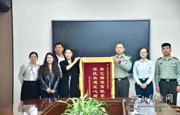 陆军工程大学石家庄校区向河北工程技术学院艺术与传媒学院赠送锦旗。吴珊珊 摄