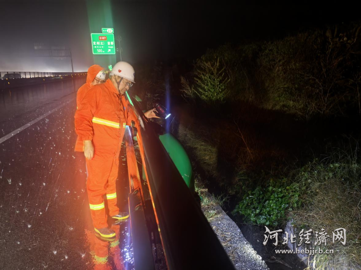 沿线持续降雨紧盯重点路段巡查。 杨硕 摄