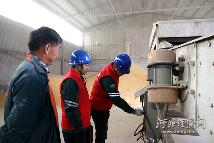 在馆陶县昌裕粮贸有限公司,国网馆陶供电公司员工仔细检查脱粒机、烘干机的接线与绝缘状况,并现场指导农户做好阴雨天气安全防护。为确保秋粮丰收期间安全用电,国网馆陶供电公司组织人员主动走进田间地头、烘干车间,为种粮大户、粮食收购现场讲解安全用电注意事项。同时结合往年经验,强化临时用电管理,从源头上消除安全隐患。此外,开辟秋收办电绿色通道,简化流程,快速响应烘干、脱粒等关键环节的用电需求。