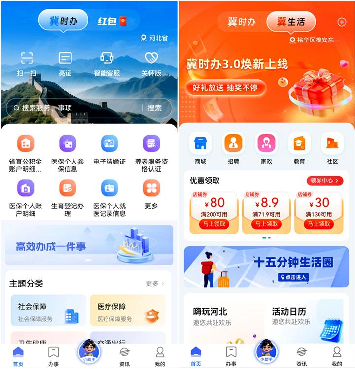 冀时办3.0版以“政务主导、媒体赋能、生态融合”为核心,未来将建设成为集政务服务、便民服务、生活服务、资讯与政策宣传于一体的“政务+生活”一站式数字化综合服务平台。