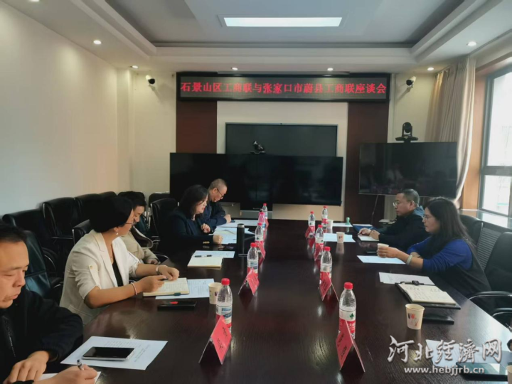 会议围绕蔚县和石景山区两地资源共享与合作发展进行座谈交流。斯琴介绍了石景山区工商联机关建设等基本情况,就“智库研会”、产业保护、企业先锋作用、政务服务功能等方面与蔚县工商联分享了工作经验和方法。双方一致认为,要经常性开展互学互鉴,建立统战部门深厚情谊,通过座谈、参观、考察等方式借鉴对方成功经验做法,推动双方工作思路和方法创新,为企业经济高质量发展赋能助力。