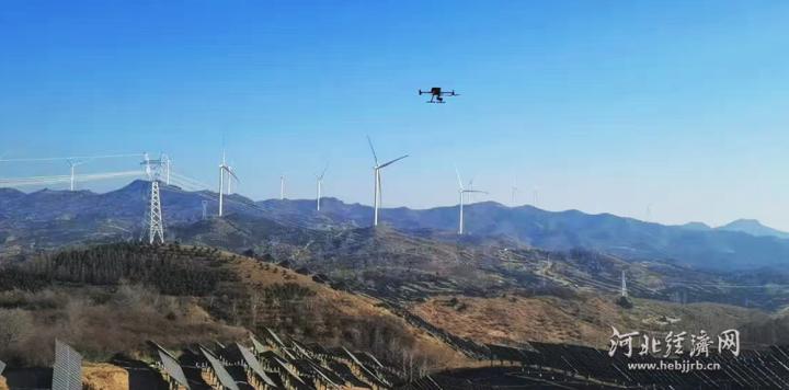 在承德围场滴水湖光伏电站,无人机正在进行智能巡检。河北空天控股公司供图