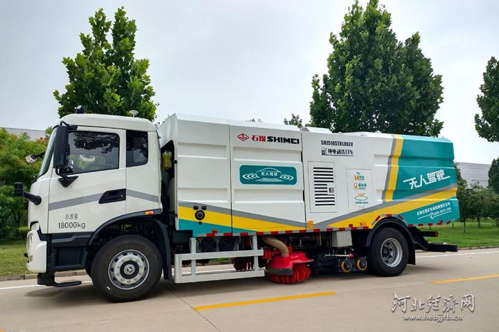 最近一段时间,在冀中能源装备集团石煤机公司的厂区道路上,经常能看到一辆大型纯电动环卫车往来穿行,拐弯、避障,喷嘴喷出清水,扫刷高速旋转,将路面清洗得干干净净,让人惊奇的是,驾驶室并没有司机。