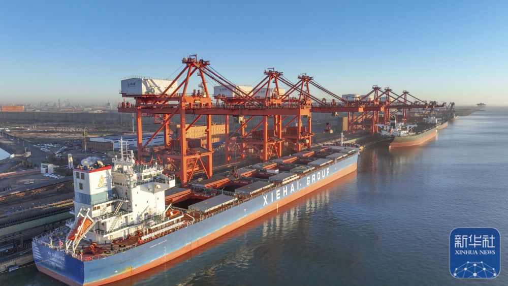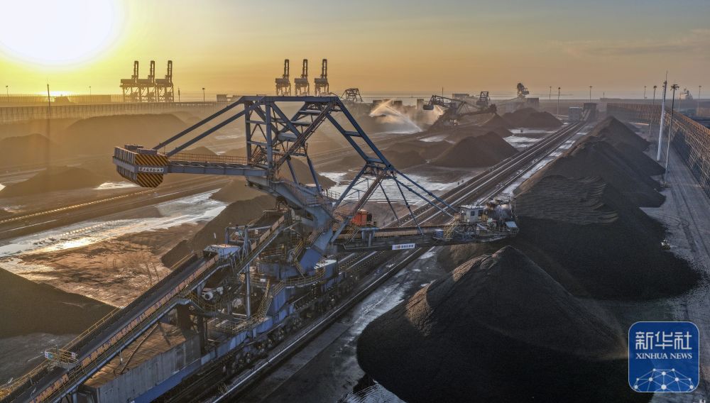 冬季即将来临,河北省唐山港京唐港区煤炭堆场、码头一片忙碌景象,工人们加紧进行电煤转运、装船等工作,全力保障电煤供应。