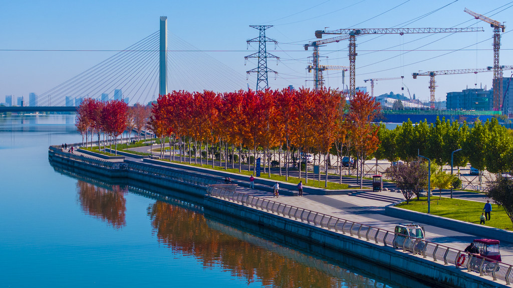色彩斑斓的石家庄太平河畔。