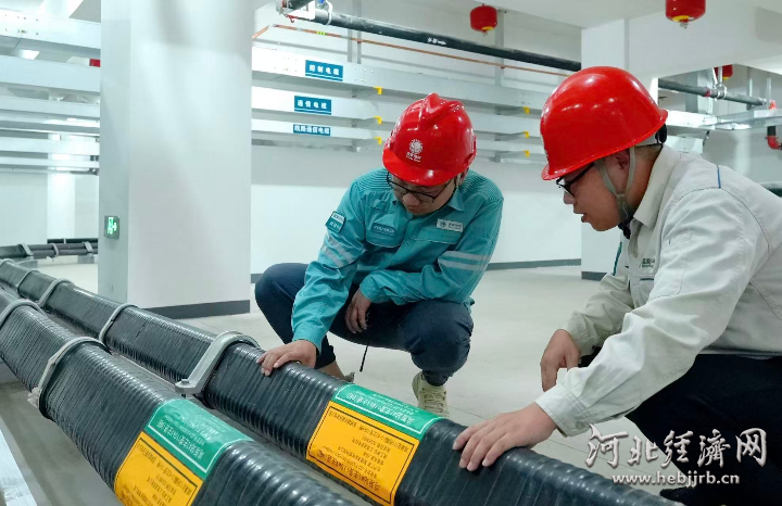 工作人员对110千伏电缆进行质量验收。米晗 供图