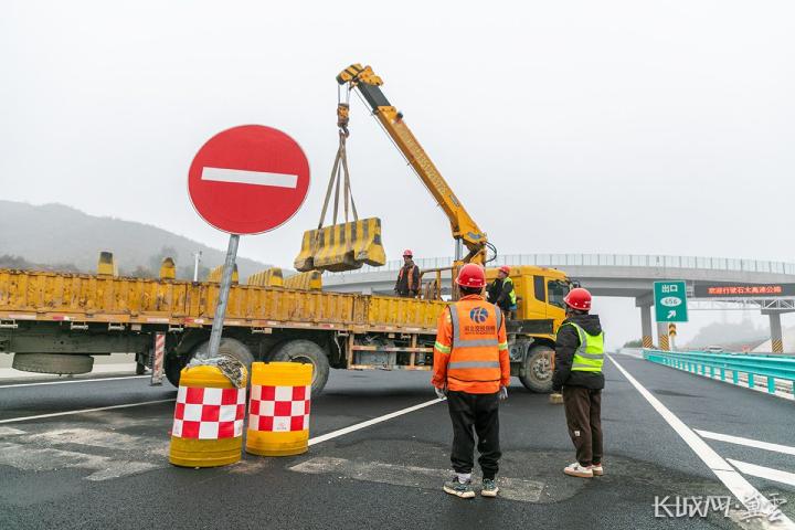 10月30日,工作人员正在清理路障,为石太高速公路改扩建项目全线通车做准备。长城网·冀云客户端记者 李皓 摄