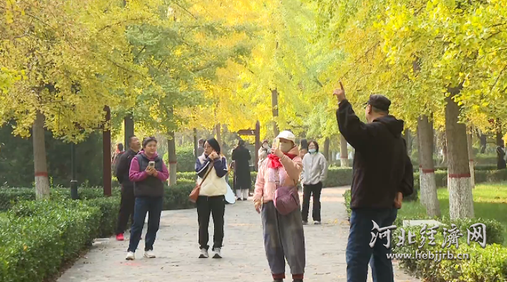 河北经济日报讯(通讯员 刘露 刘蓉菲)近日,石家庄市鹿泉区海山公园园内400余株银杏树已全面进入最佳观赏期,满树金黄的叶片将公园装扮成一片金色海洋,吸引了众多市民和游客前来打卡,赏秋感受秋日独有的浪漫与诗意。
