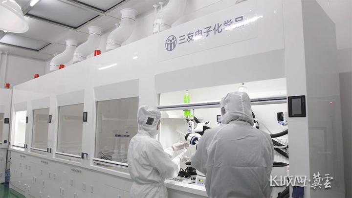唐山三友集团电子化学品公司千级分析室内,工作人员正在进行检测分析。受访单位供图