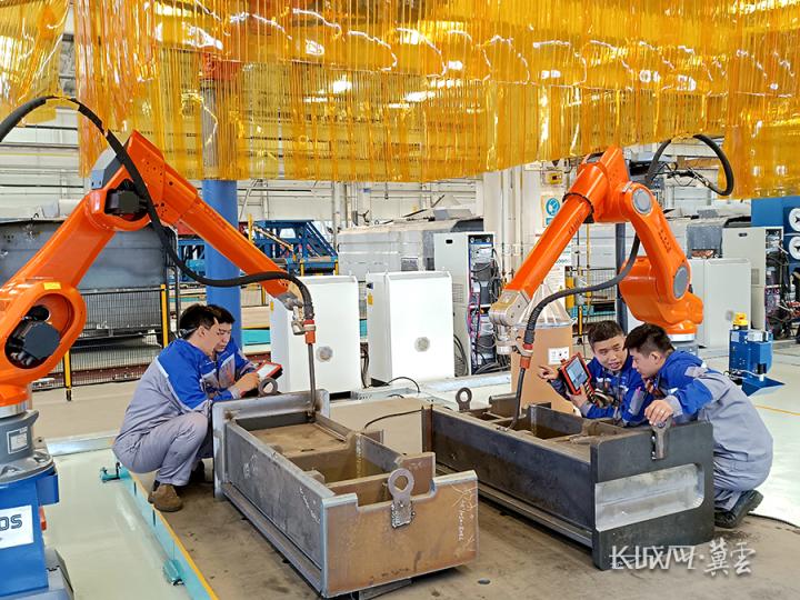 焊接机器人团队进行业务研讨。石煤机公司供图