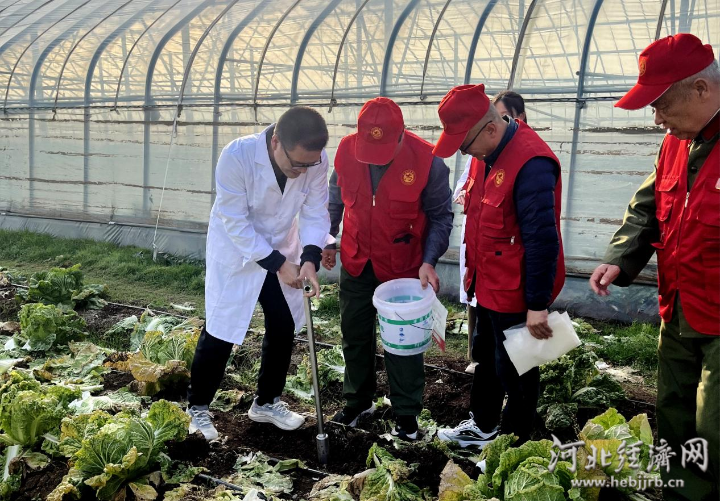 作为清朝嘉庆年间就被列为皇家贡品的特色农产品,滏河贡白菜依托平乡县壤质潮土、适宜充足光热资源,形成了结球紧实、味甜可口的独特品质。“土壤是蔬菜生长的根基,测土配方施肥就是给土地做‘体检’,才能让贡白菜吃得精准、长得健壮。”老兵服务队队员一边采集土壤样本,一边向种植户讲解测土的重要性。