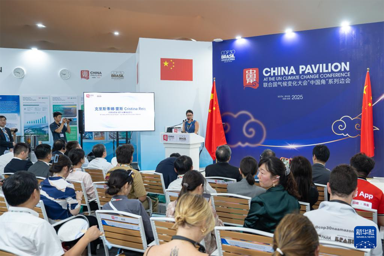 这是11月12日在巴西贝伦拍摄的“中国碳达峰碳中和之路”边会现场。新华社记者 王天聪 摄