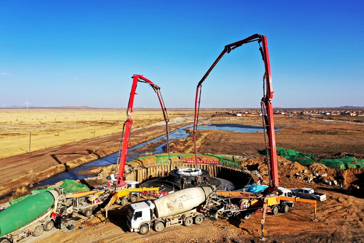 沽源县5万千瓦风电项目全部风机基础混凝土浇筑工作完成。王子睿 摄