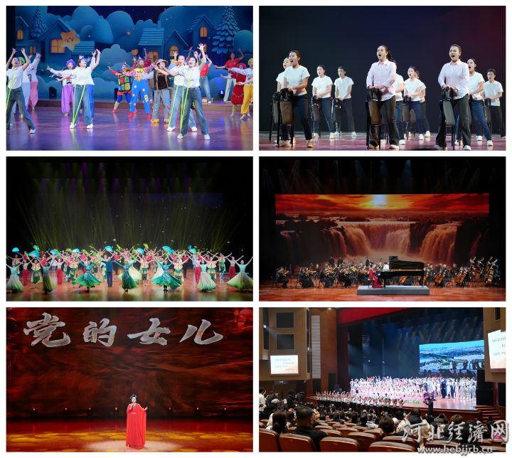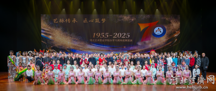 随后,现场嘉宾赴石家庄人民会堂欣赏了学院办学70周年成果展演(综合场)。整场演出通过“晨功·时光剪影”“经典·一脉相承”“多元·艺彩万象”“薪火·共赴新程”四个篇章融合了舞蹈、戏曲、音乐、时尚表演等艺术形式。演出以“无声的艺术叙事”为核心理念,舞蹈《放风筝》、民乐合奏《锦色河北》、戏曲《薪火赓续》、时尚表演《时·溯》、空乘礼仪表演《云端·悦行》、学前教育情景表演《稚童年》、台词教学情景表演《玩转元素》、舞蹈《舞聚星河》、钢琴协奏曲《黄河》、河北梆子《党的女儿》等节目陆续登台,通过肢体语言、光影艺术与经典旋律的有机融合,绘就一幅跨越七十载的艺术教育长卷。近800名师生演职人员倾情投入,全面展现了学院多元专业的教学成果与艺术创新的时代风采。