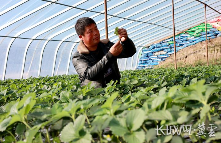 许宝茹在大棚里查看草莓长势。长城网·冀云客户端记者 袁立朋 摄
