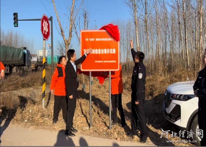 平安产险河北分公司联合交警揭牌“交通事故隐患治理示范路”。陈玉洁 供图