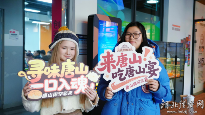 活动现场的展示区成为学生驻足打卡地。皮影雕刻的精巧纹样尽显非遗匠心,陶瓷文创的别致设计承载“北方瓷都”的千年文脉;棋子烧饼的咸香、燕山板栗的甘甜交织弥漫,唤醒学子对唐山城市的向往。一旁的宣传展架,以全景视角铺展唐山文旅风貌,全方位、多角度呈现城市魅力。