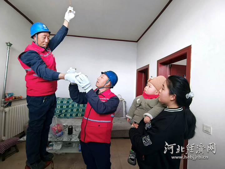 邢海明和同事为村民更换照明设施。单文忠 摄