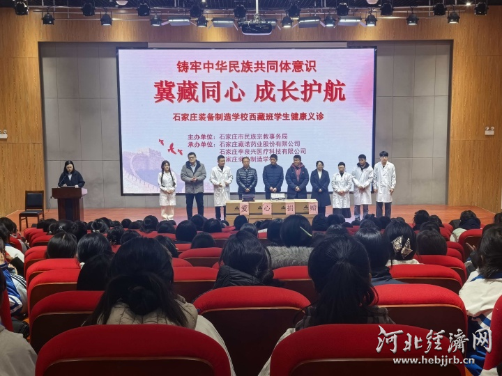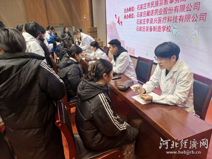 河北经济日报讯(孙兴兴 董昊东)12月28日,由石家庄市民族宗教事务局主办,石家庄藏诺药业股份有限公司、石家庄李泉兴医疗科技有限公司、石家庄装备制造学校联合承办的“冀藏同心·成长护航”健康义诊活动在石家庄装备制造学校多功能报告厅举行。