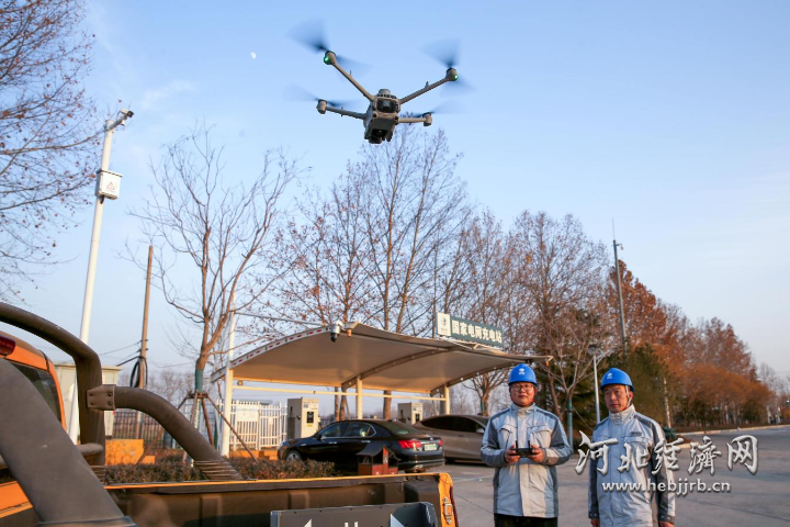 国网正定供电公司工作人员操作移动式无人机机巢对高速公路充电站配套电网设备进行飞巡。康伟 摄