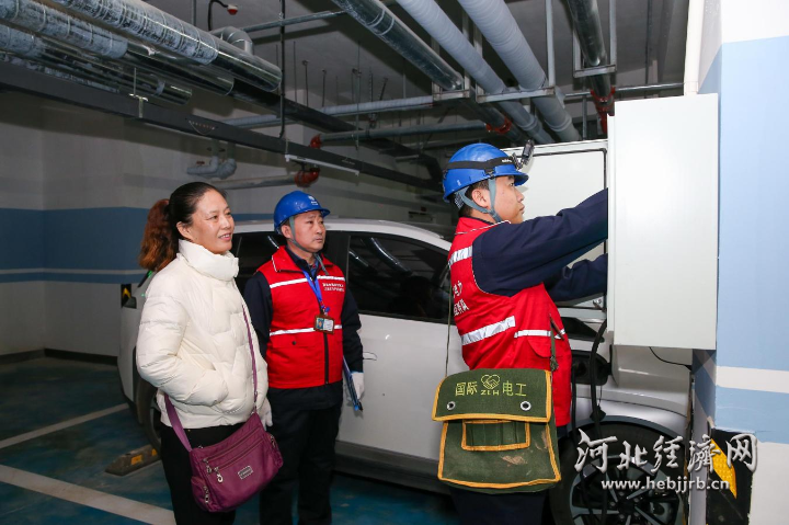 国网石家庄供电公司工作人员为小区新能源车主提供便捷接电服务。康伟 摄