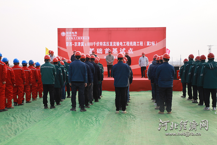 1月16日,蒙西-京津冀±800千伏特高压直流输电线路工程(冀2标)首基试点正式启动。贺梦娟 摄