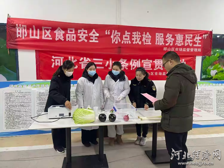 河北经济日报讯(通讯员 张朝阳)为切实筑牢辖区食品安全防线,进一步提升新修订《河北省食品小作坊小餐饮小摊点管理条例》(以下简称《条例》)社会知晓度,1月22日,邯山区市场监管局组织执法人员深入公园名筑小区,开展《条例》专题宣贯暨“你点我检”便民服务活动,将监管服务精准送到群众“家门口”。