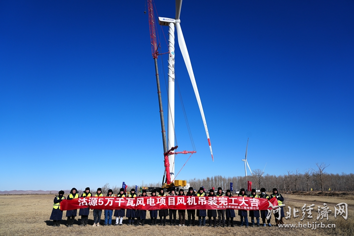 沽源县5万千瓦风电项目全部风机吊装工作圆满完成。齐瑞丰 摄