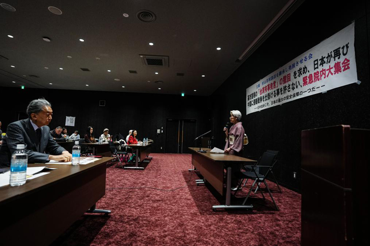 1月29日,在日本东京,日本学者在集会上发言,批评高市早苗军事扩张路线。新华社记者 贾浩成 摄