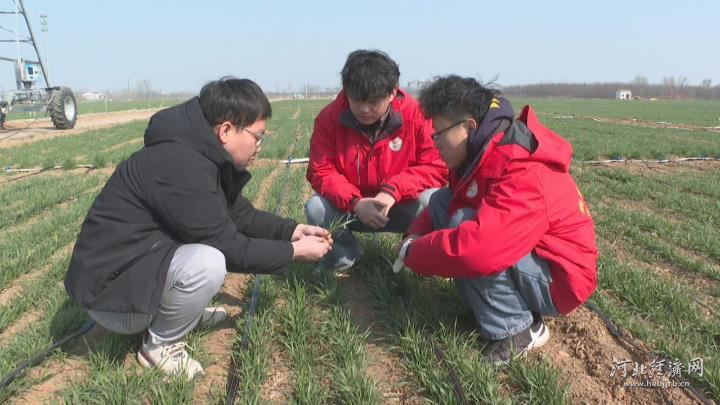 中国农业大学博士生刘延浩介绍道:“我的研究主要是探寻不同播种模式与微喷带配套使用对于小麦生长、产量的一些影响。春灌期间,我们目前主要关注土壤的含水率以及小麦的一些分蘖情况,通过这些情况去对当地农户进行灌水、施肥精量化的指导和帮助,为当地小麦增产增收做出一些帮助。”