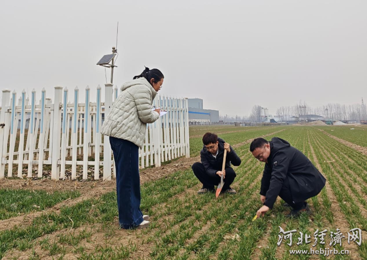 河北霸州市气象局工作人员开展冬小麦长势调查。霸州市气象局 供图